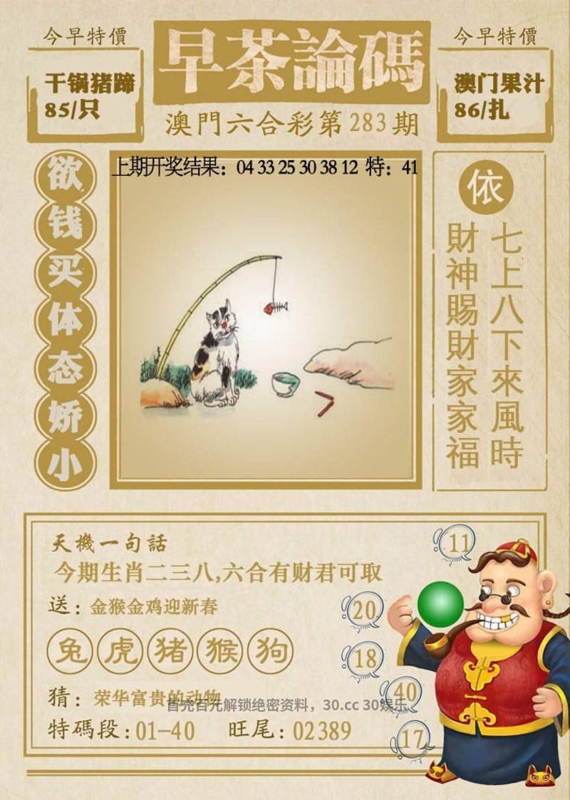 282期:九肖 | 蛇羊兔猪龙牛狗马猴 | 开:牛41 |