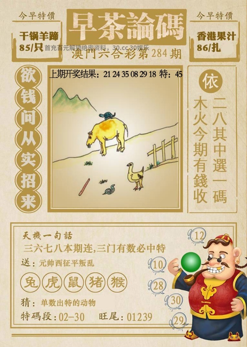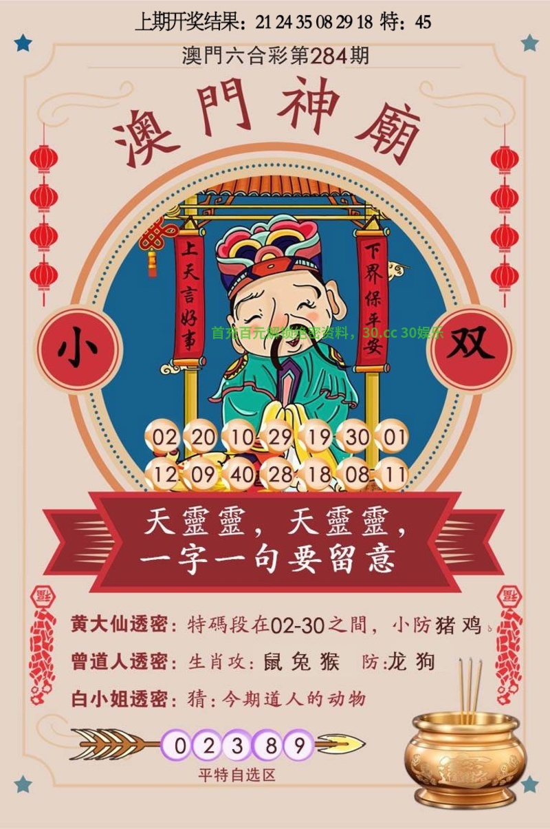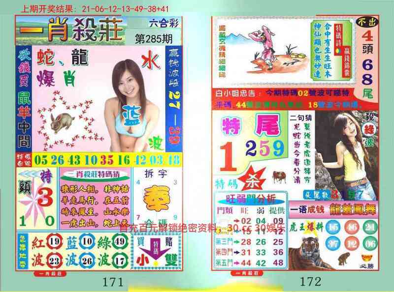 285期:单双两肖【双肖+羊兔】开:马24准 |