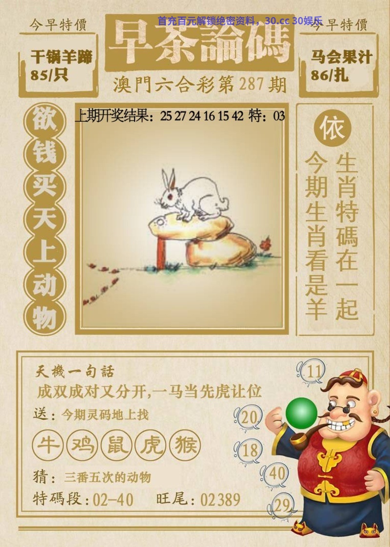 286期:家野两肖〖家禽+龙兔〗开:兔03准 |